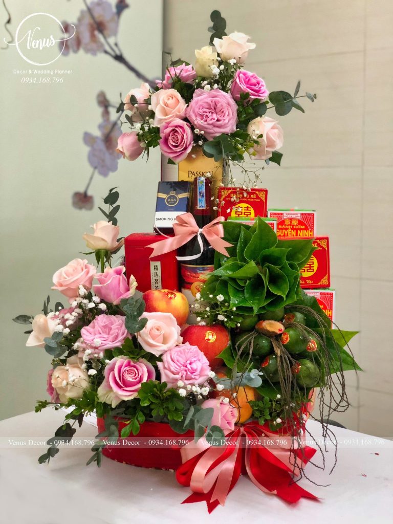 Tráp dạm ngõ đẹp 190k đầy đủ Cau rượu thuốc chè HOA TƯƠI