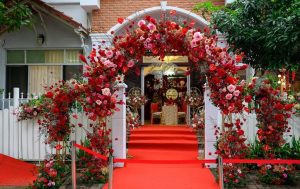 Cổng Hoa Cưới Màu Đỏ Trang Trí Đẹp , Gía Tốt Trang trí cổng hoa...