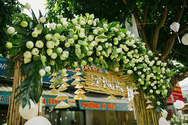 cổng cưới bằng hoa sen, mâm quả cưới, phong tục cưới, cổng cưới, dịch vụ cổng cưới, dịch vụ phông rạp cưới