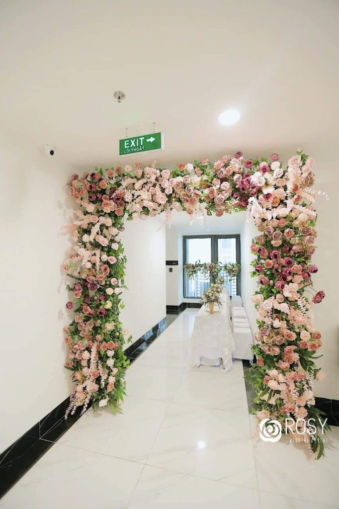 Cổng hoa cưới là 1 cánh cửa hay cổng được bày diễn trang trí bởi hoa và các vật liệu bày diễn trang trí không giống, được đặt ở đầu đường truyền tới vị trí ra mắt lễ cưới. Nó là một phần cần thiết của trang trí cưới và là nơi để những khách mời chụp ảnh lưu niệm. Cổng hoa cưới đền đc trang trí đi theo sang trọng của đám cưới và có thể được gia công từ bỏ những một số loại hoa không giống nhau, từ bỏ hoa hồng & hoa cẩm chướng đến hoa baby’s breath và hoa tulip. Trang trí rạp cưới ngoài trời Yên Hòa Cầu Giấy