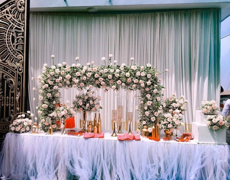 vấn đề chọn cửa ngõ cưới phù hợp mang không gian tiệc cưới cũng rất cần thiết. Nếu tiệc cưới diễn ra quanh đó trời, chúng ta có thể lựa chọn cổng cưới mang chi tiết nhành hoa thoải mái và tự nhiên cho khoảng không đơn sơ hay cụ thể chi tiết sắt kẽm kim loại sáng loáng mang lại không gian long lanh. Nếu game thủ tổ chức triển khai tiệc cưới ở nhà thì cổng cưới được trang trí bằng hoa tươi hay đèn led sẽ là sự lựa chọn tuyệt vời nhằm điểm tô bổ xung vẻ đẹp cho không gian.