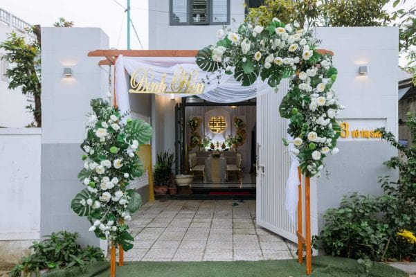 Việc lựa chọn cửa cưới tương xứng mang khoảng không tiệc cưới cũng rất cần thiết. Nếu tiệc cưới diễn ra bên cạnh trời, bạn có thể lựa chọn cổng cưới sở hữu cụ thể chi tiết hoa lá tự nhiên mang lại không gian đơn sơ hoặc chi tiết kim loại sáng loáng đến khoảng không lung linh. Nếu bạn tổ chức triển khai tiệc cưới ở nhà thì cổng cưới được trang trí bởi hoa tươi tốt đèn led được xem là sự lựa chọn tuyệt vời nhằm tô điểm bổ xung sắc đẹp đến khoảng không.