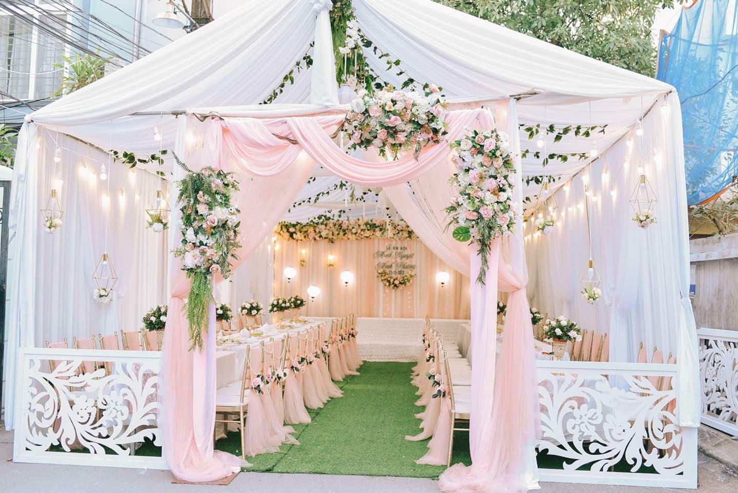 - Trang trí lễ cưới tại nhà hàng hoặc nhà riêng, trong nhà hoặc ngoài trời.