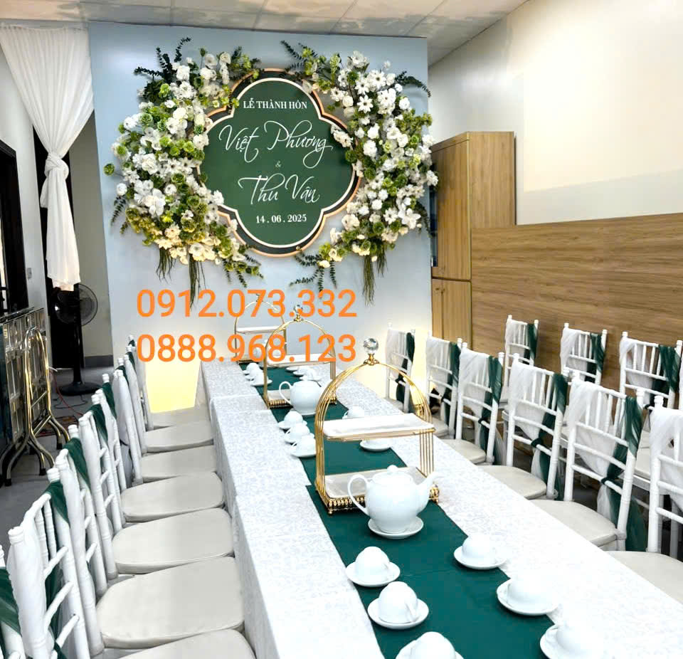 Thi công nhanh chóng, chuyên nghiệp: Đội ngũ nhân sự giàu kinh nghiệm sẽ hoàn thiện phông cưới đúng thời gian và chuẩn đến từng chi tiết.