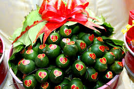 Lễ vật đám cưới gồm những gì – Ý nghĩa của từng loại mâm ? · Trầu cau · Trái cây · Bánh ngọt · Trà, rượu, nến · Xôi gấc, gà, heo quay.