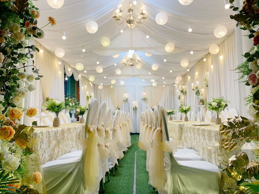 Cho thuê bàn ghế khung rạp, trang trí đám cưới tại nhà, bàn thờ gia tiên, cầu thang, trần nhà, âm thanh ánh sáng sân khấu, cho thuê MC, ca sĩ, phông cổng hoa, tháp ly, bánh kem, thùng tiền, …