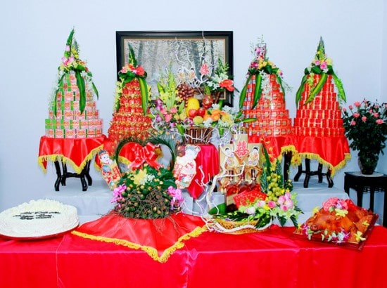 Bàn thờ gia tiên cưới không nên thuê dịch vụ mà hãy tự trang trí. Tham khảo các kiểu cắm hoa bàn thờ cách chưng trái cây cưới đẹp.