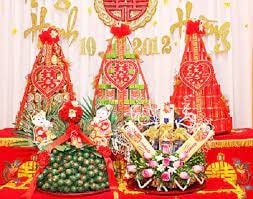 chuyên sắp lễ ăn hỏi 5 tráp theo yêu cầu, trang trí đẹp mắt, … với chè tân cương được xếp hình tháp nhằm tạo nên mâm lễ đẹp, bắt mắt nhất.
